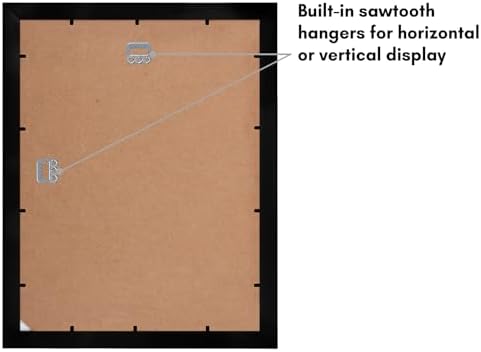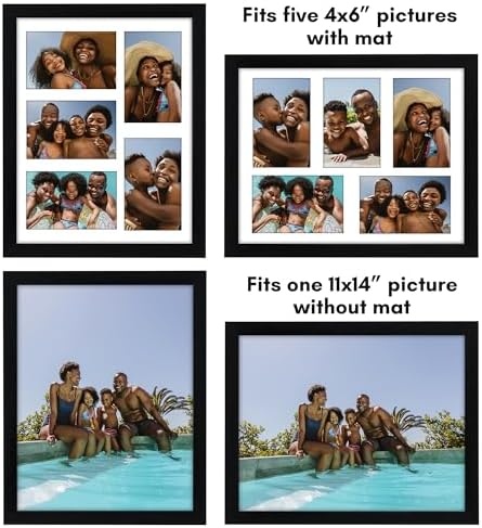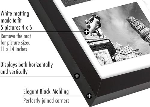 11×14 MDF frame with a black finish, perfect for photos or artwork. Includes a white mat for five 4×6 photos or one 11×14 photo.