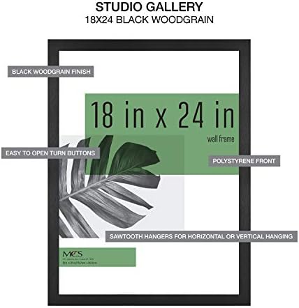The MCS Studio Gallery 18×24 Inch Wall Frame is the superior choice when framing photographs or artwork. Crafted with a 1. 125-inch classic MDF wood frame and durable polystyrene front, the Studio Gallery stylishly showcases your favorite photographs, posters or art prints. The classic black woodgrain finish coordinates with most décor styles, making it the perfect addition to your living room, bedroom or entry way. The Studio Gallery frame has easy to use turn buttons and includes sawtooth hangers for vertical or horizontal wall hanging.